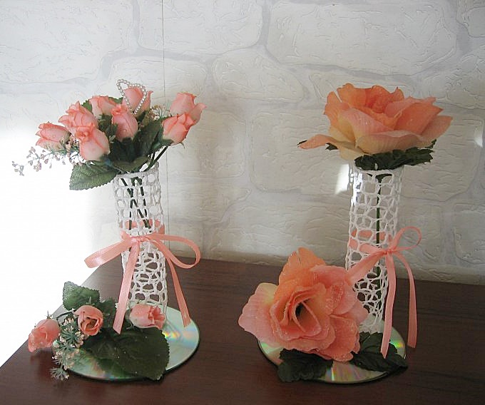 Świetny pomysł!pierwszy raz widzę wazoniki zrobione na szydełku!